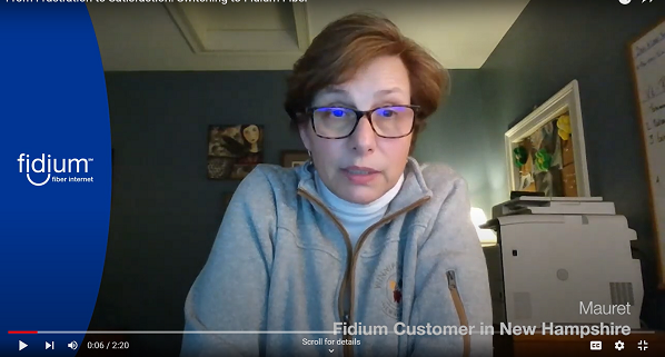 Mauret, a Fidium customer in Durham, N.H., and her husband moved into a 55-plus community in preparation for retirement in the coming years. Mauret loves her fast-paced work with the ALS Association. In 2020, her work team went fully remote and her connection wasn't the best causing Mauret to be frustrated by laggy internet. Finally, in 2021, fiber came to Durham and from that point, everything changed.