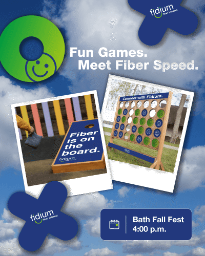 Fidium was proud to sponsor Autumnfest 2025 this past weekend in downtown Bath! Families had a blast playing cornhole, giant Connect Four, and large Tic-Tac-Toe, while enjoying crafts, pumpkin painting, and live music.