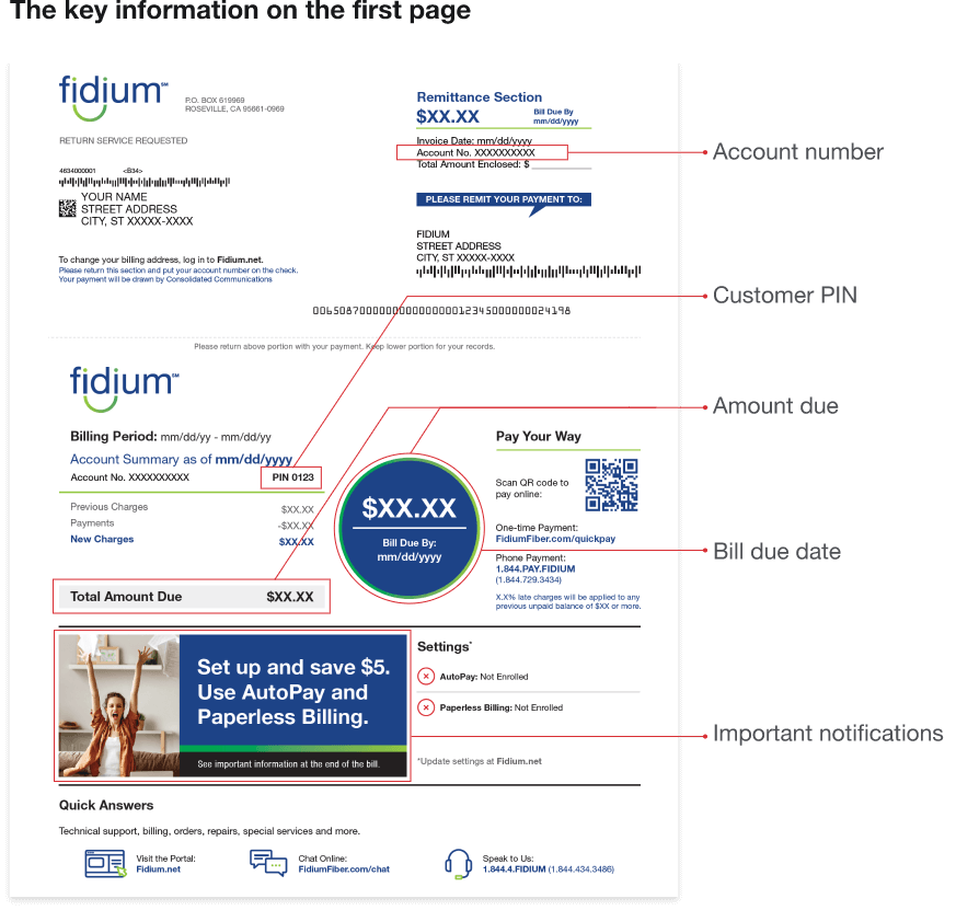 - Make a one-time payment at FidiumFiber.com/quickpay