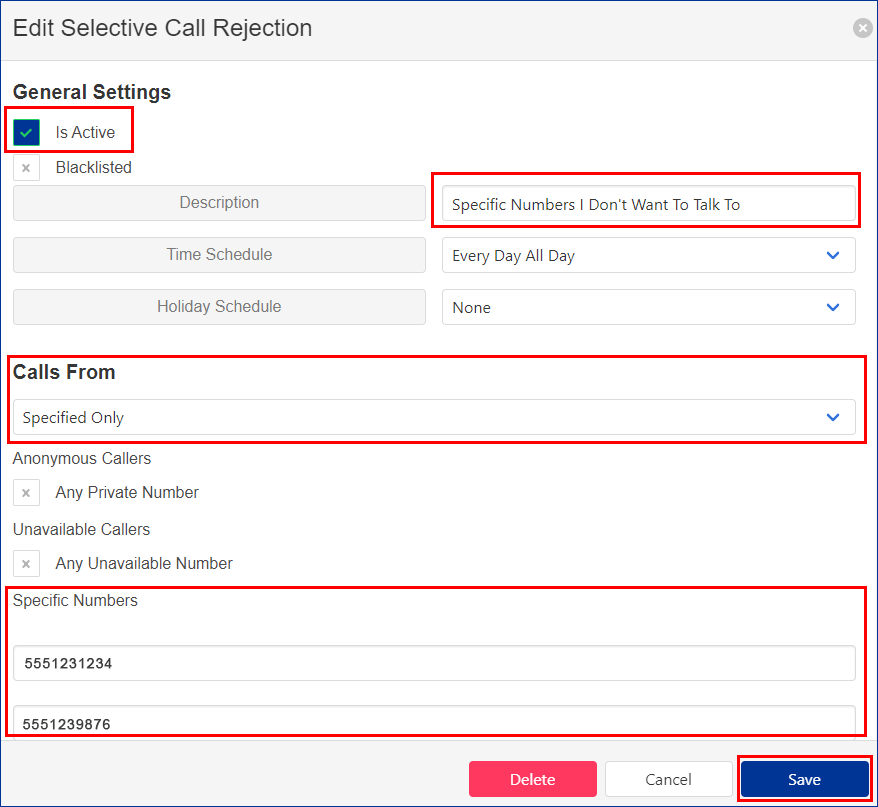 - Selecting this option will prevent callers who are calling from a number that is unavailable for any reason.